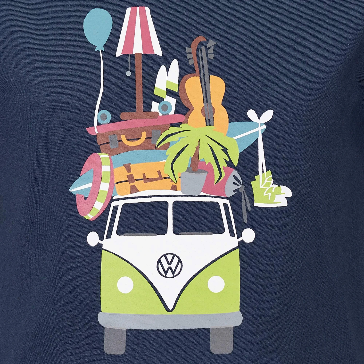 Der Bulli ist in diesem Fall auf einem nachhaltigen Untergrund unterwegs, und zwar auf einem hochwertigen Gewebe aus GOTS-zertifizierter Bio-Baumwolle. Die Baumwolle liegt weich auf der Haut und der bequeme, gerade Schnitt ermöglicht uneingeschränktes Herumtoben am nächsten Reiseziel.