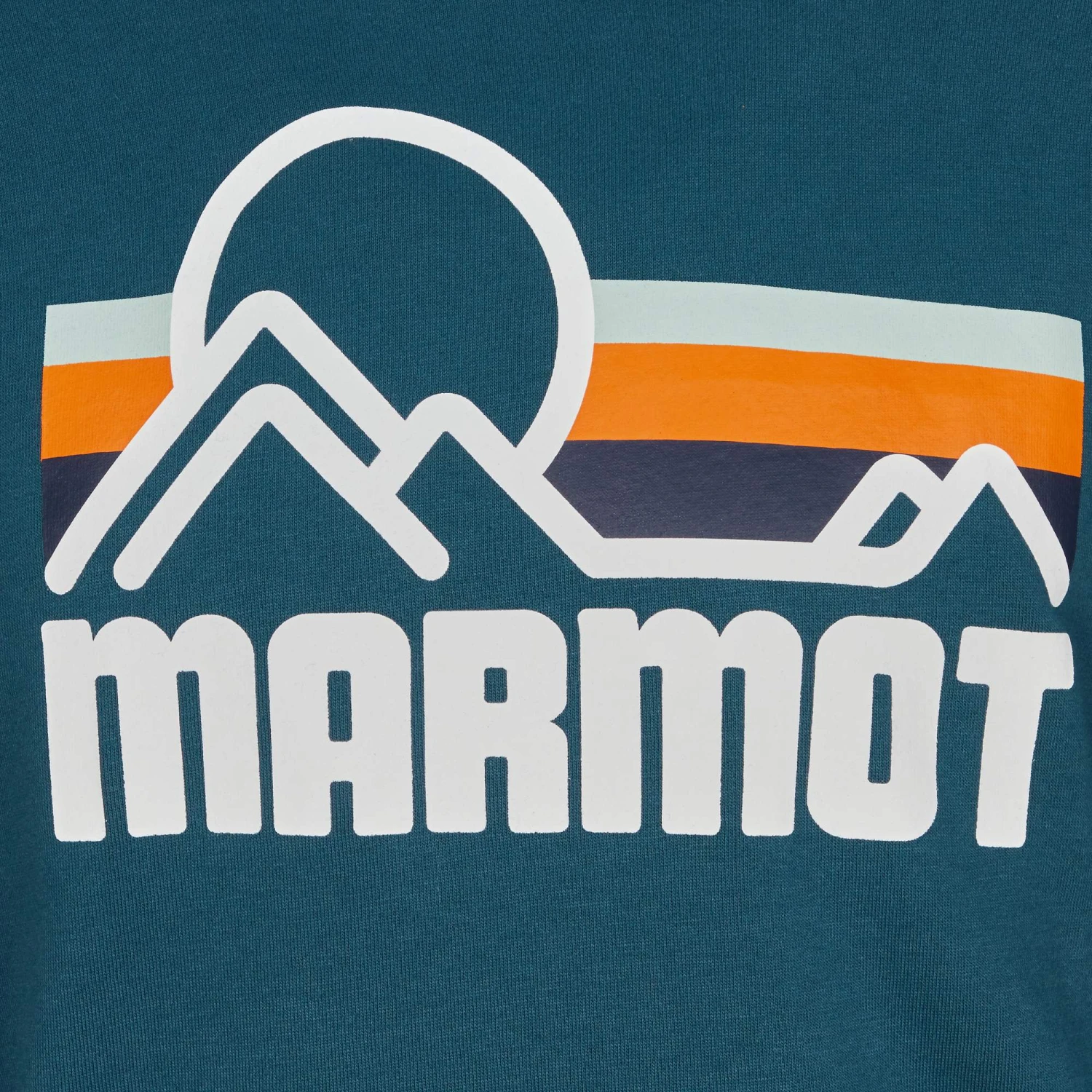 Der klassische Schnitt und das dehnbare Material sorgen für Bewegungsfreiheit. Die elastischen Rippstrick-Bündchen bieten guten Sitz und runden den lässigen Hoodie zusammen mit Kapuze, Kängurutasche sowie Print mit toller Bergkulisse stilvoll und klassisch ab.