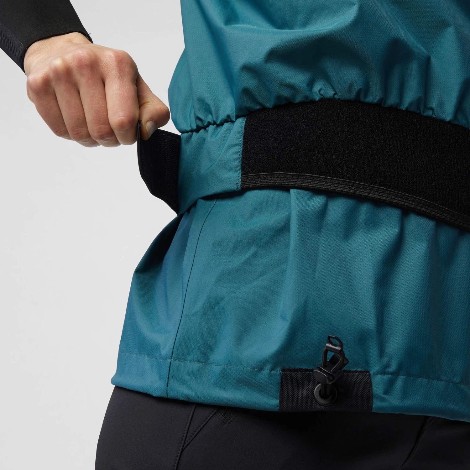 Die atmungsaktive Jacke ist aus einem wasserdichten 2,5-Lagen-Material hergestellt und mit einer großen, regulierbarer Kapuze ausgestattet. Eng anliegende Ärmelabschlüsse aus Neopren verhindern, dass Wasser über diesen Wege ins Innere der Jacke eindringen kann. Durch den doppelten Kamin kannst du auch am Bund einen wasserdichten Abschluss in Kombination mit der Spritzdecke schaffen. (Alternativ kannst du die Jacke im Kanu natürlich auch ohne Spritzschürze tragen.) Der obere Bundabschluss aus Neopren wird mit breiten Klettverschlüssen im Umfang angepasst, innen befindet sich ein Kordelzug mit Tanka.
