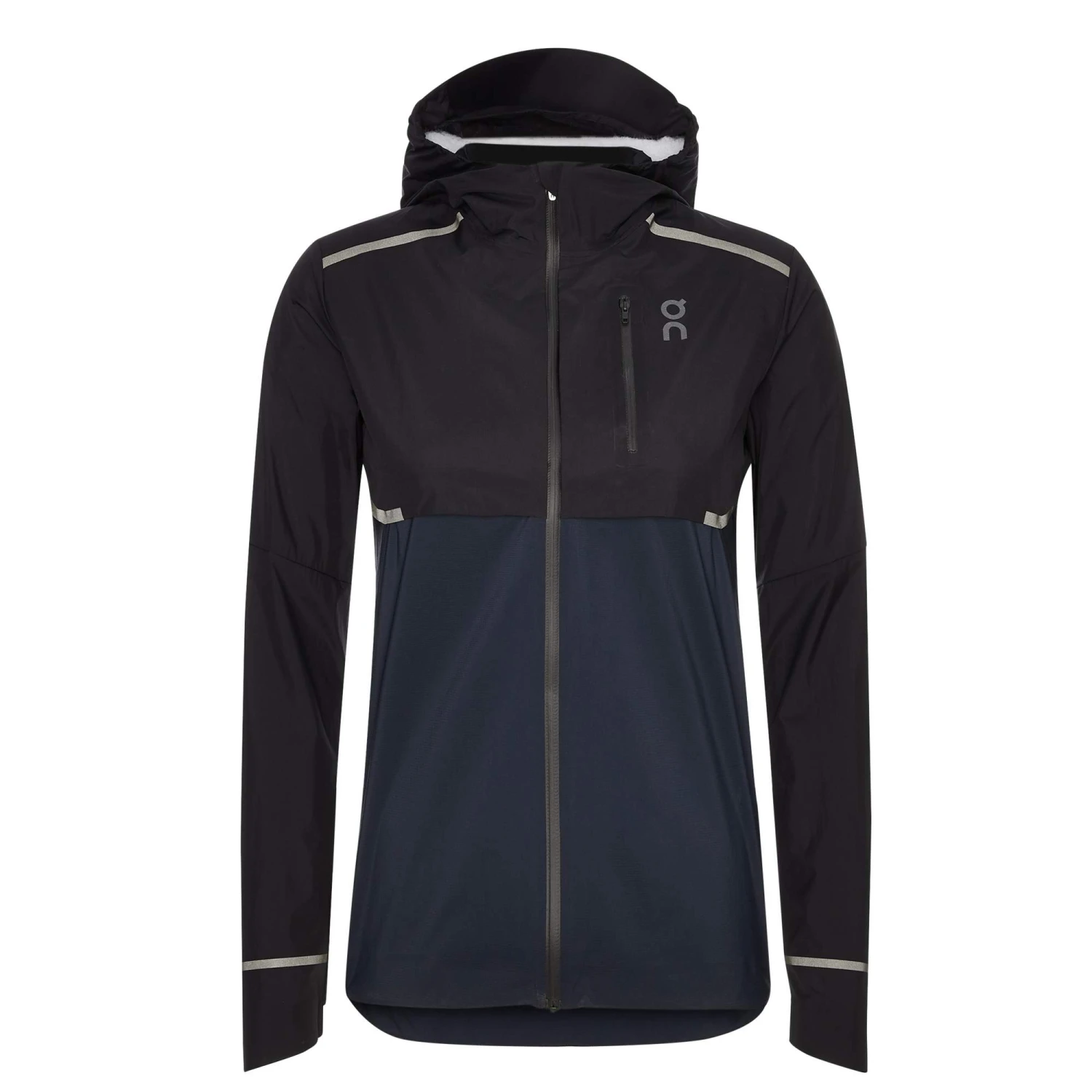 Die gut geschnittene Kapuze schränkt dein Blickfeld nicht ein und ist mit einem breiten, stabilen Schirm ausgestattet. So tropft dir der Regen nicht direkt ins Gesicht. Für Schlüssel, GPS und Energieriegel hat die Jacke zwei Reißverschluss-Taschen parat. Auch sehr praktisch: Die Jacke lässt sich in der eigenen Brusttasche klein verpacken, wenn du sie gerade nicht brauchst.