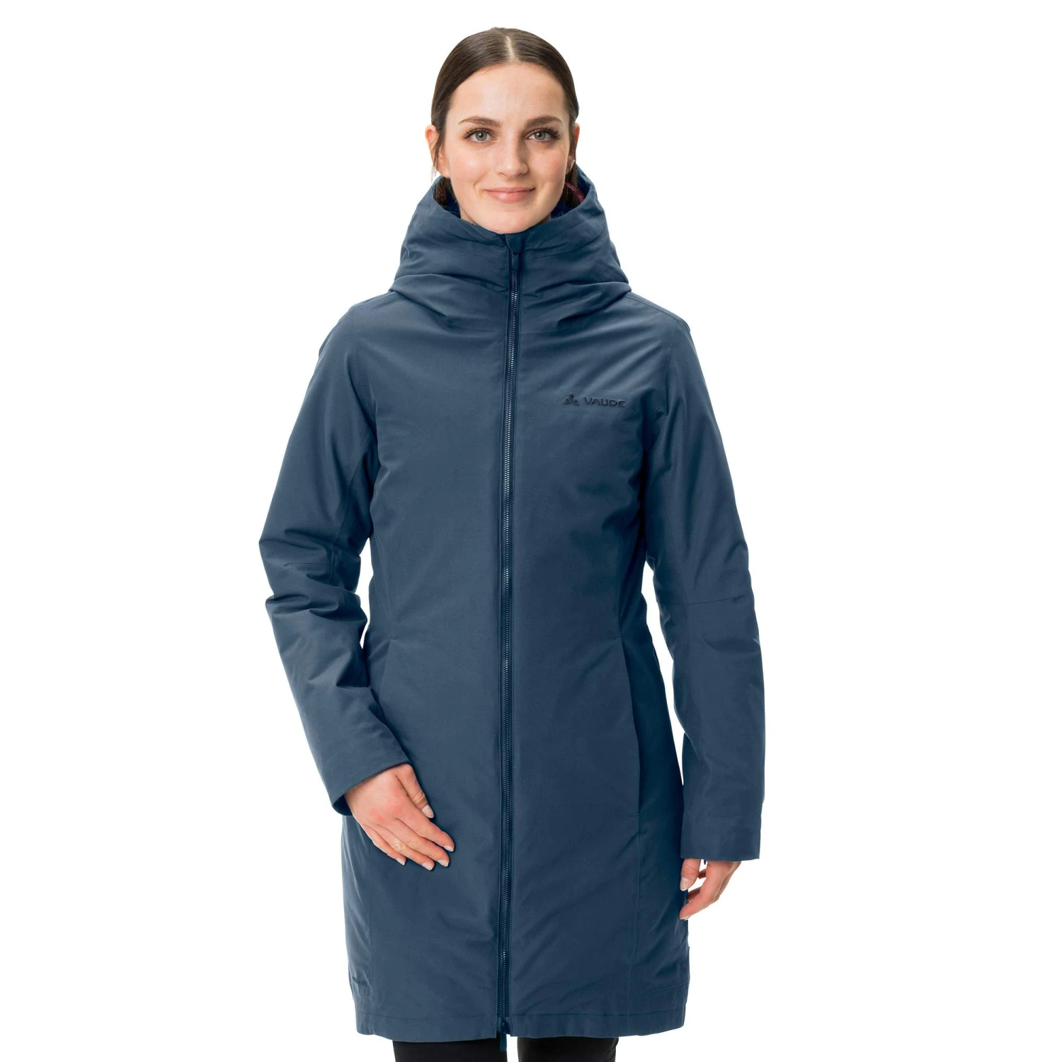 Beide Mäntel sind mit einer angeschnittenen Kapuze ausgestattet und können somit auch solo Schal und Mütze ersetzen. Für mehr Bewegungsfreiheit verfügen beide über einen 2-Wege-RV. Der Außenmantel ist außerdem mit einem Bewegungsschlitz hinten versehen. Seine vorgeformten Ärmel und die mit Klett bestückten Abschlüsse sorgen für ordentlich Komfort. Die hübsche Steppung des Innenmantels ist ein weiteres optisches Highlight.